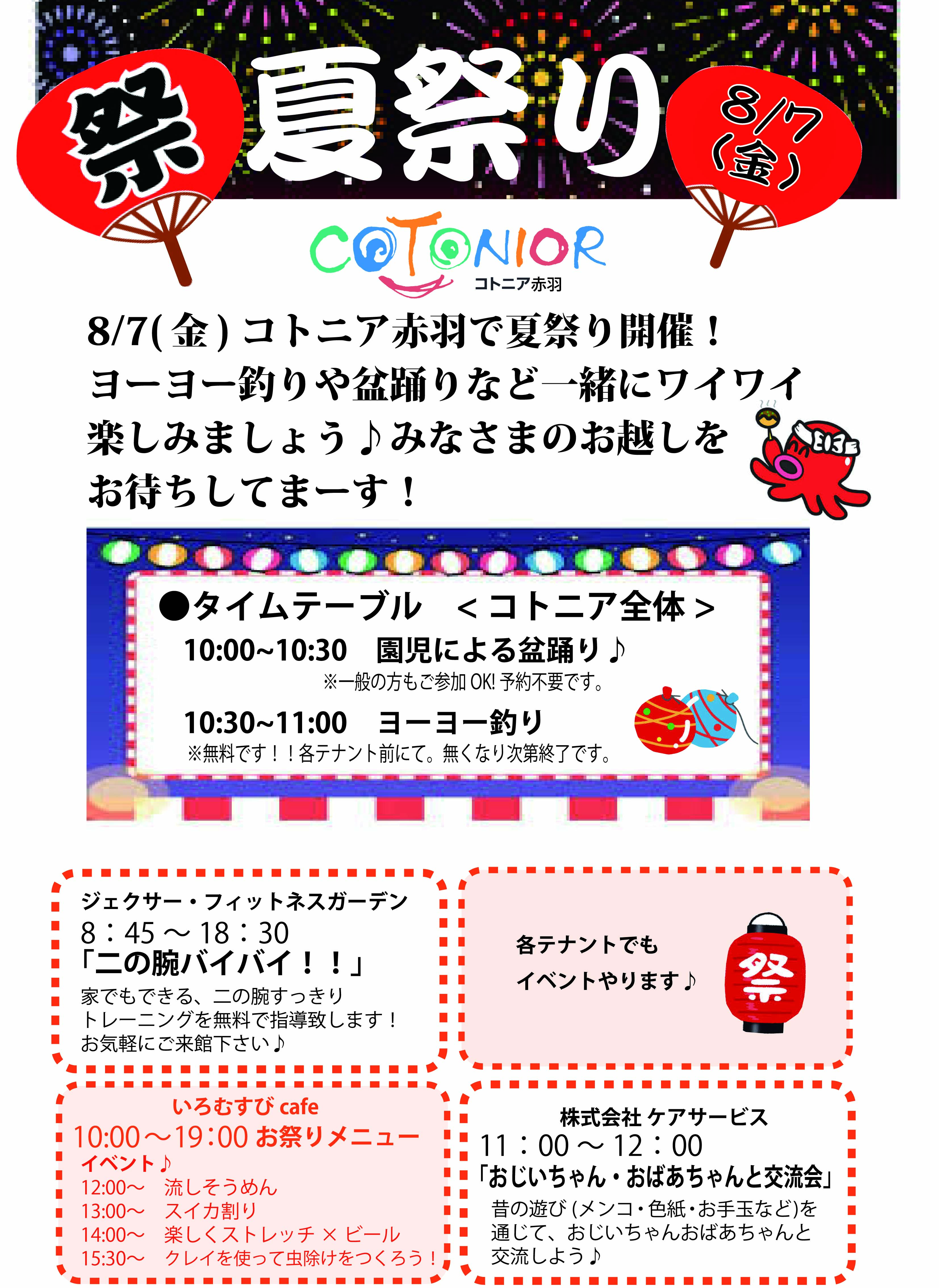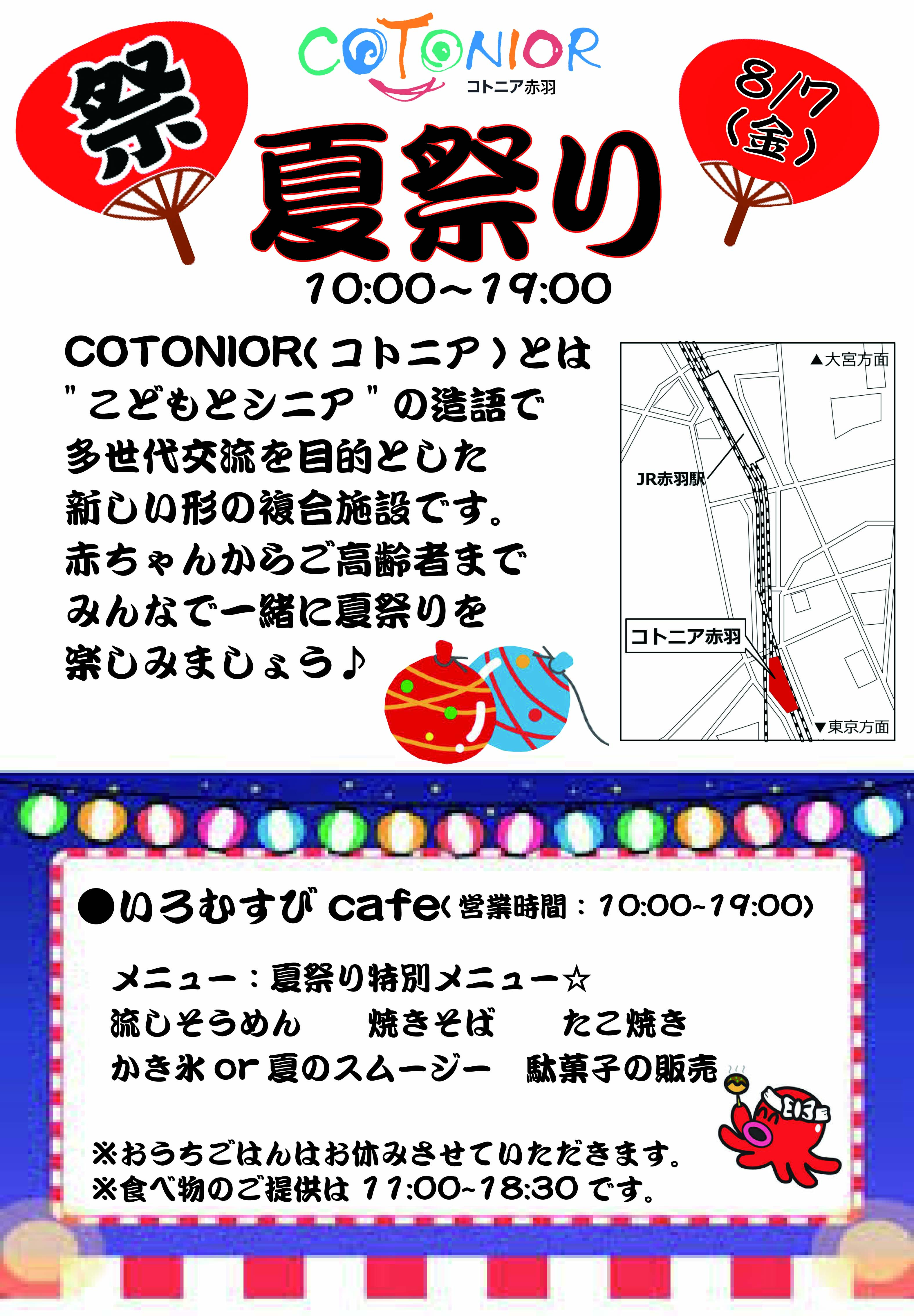 焼きそば、たこ焼き、かき氷と「夏祭り特別メニュー」をご用意します☆