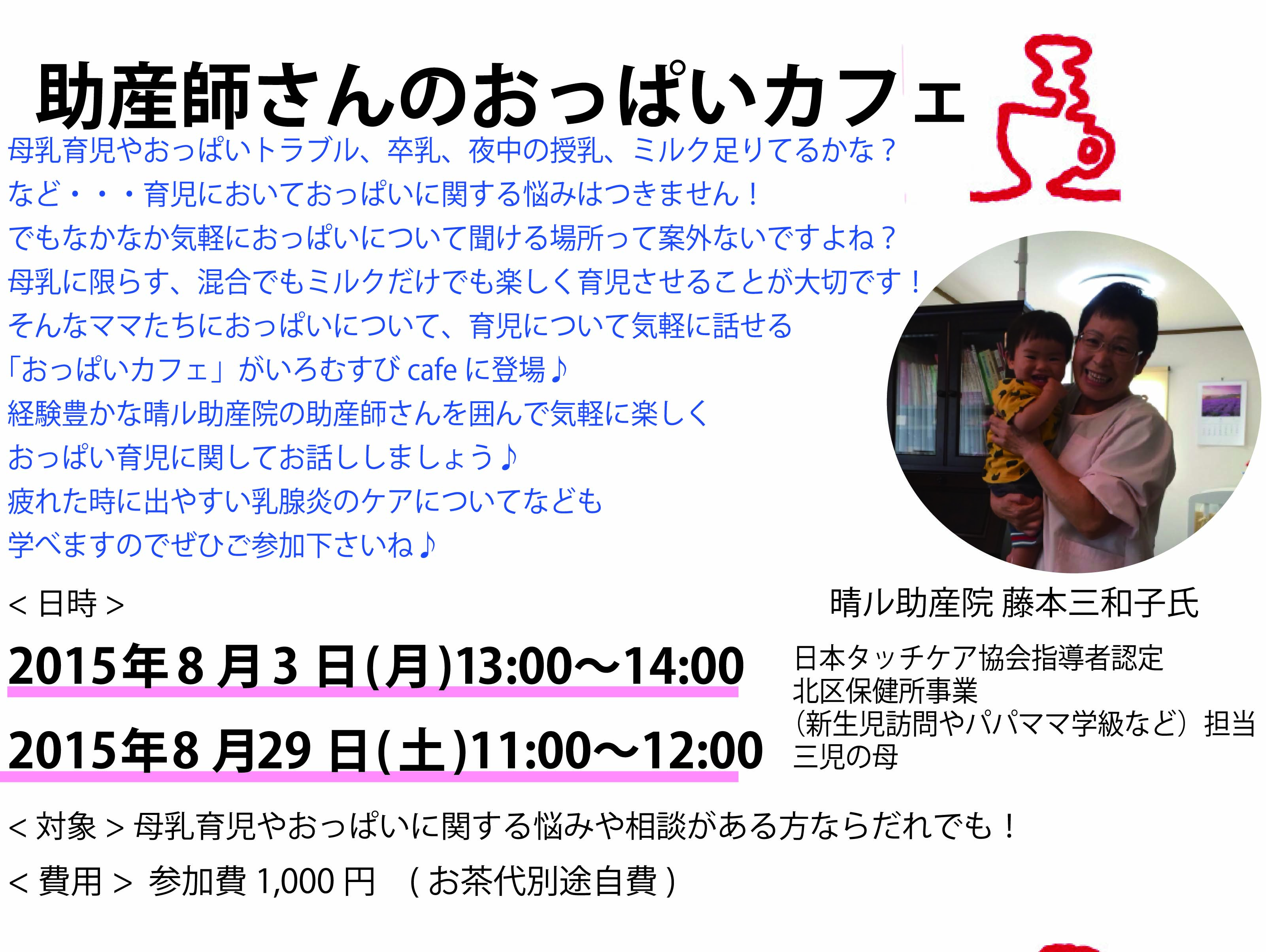 【参加者募集】8/29(土) 助産師さんのおっぱいカフェ