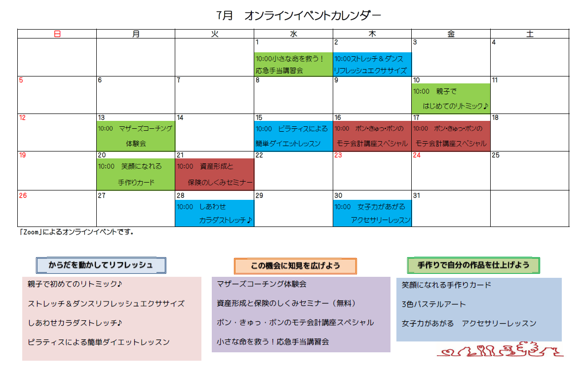 ご自宅で参加できるZoomによるオンラインイベントもあります。