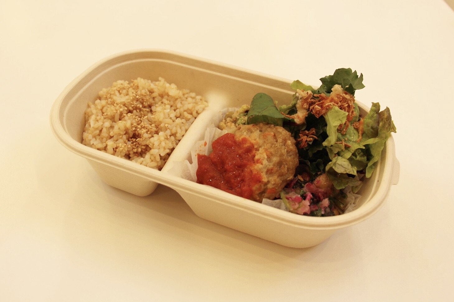 お弁当内容:玄米ごはん、日替わりメイン、お惣菜2種、サラダ ※フォーム内に日替わりメインの内容記載あり