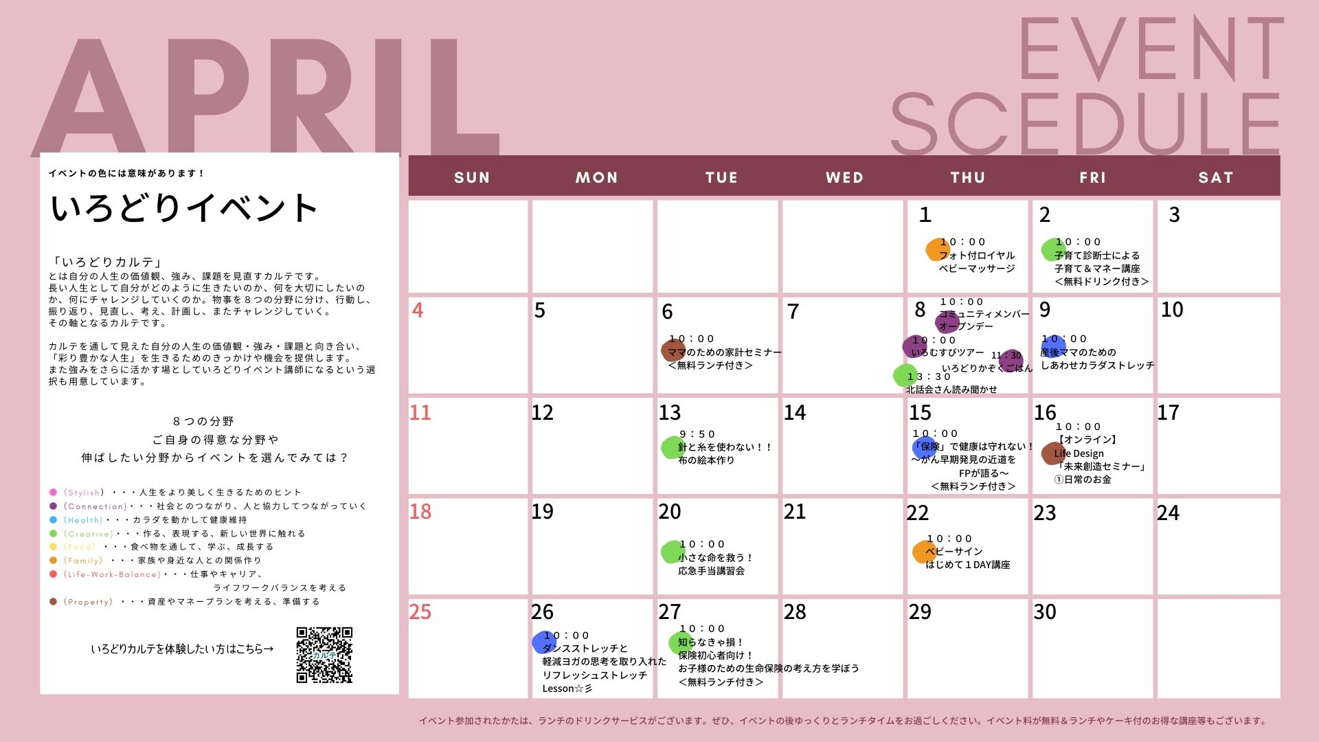 いろむすびcafeの2021年4月のイベントカレンダーです。