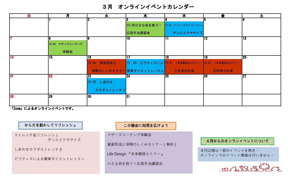 いろむすびcafeの2021年3月のイベントカレンダーです。