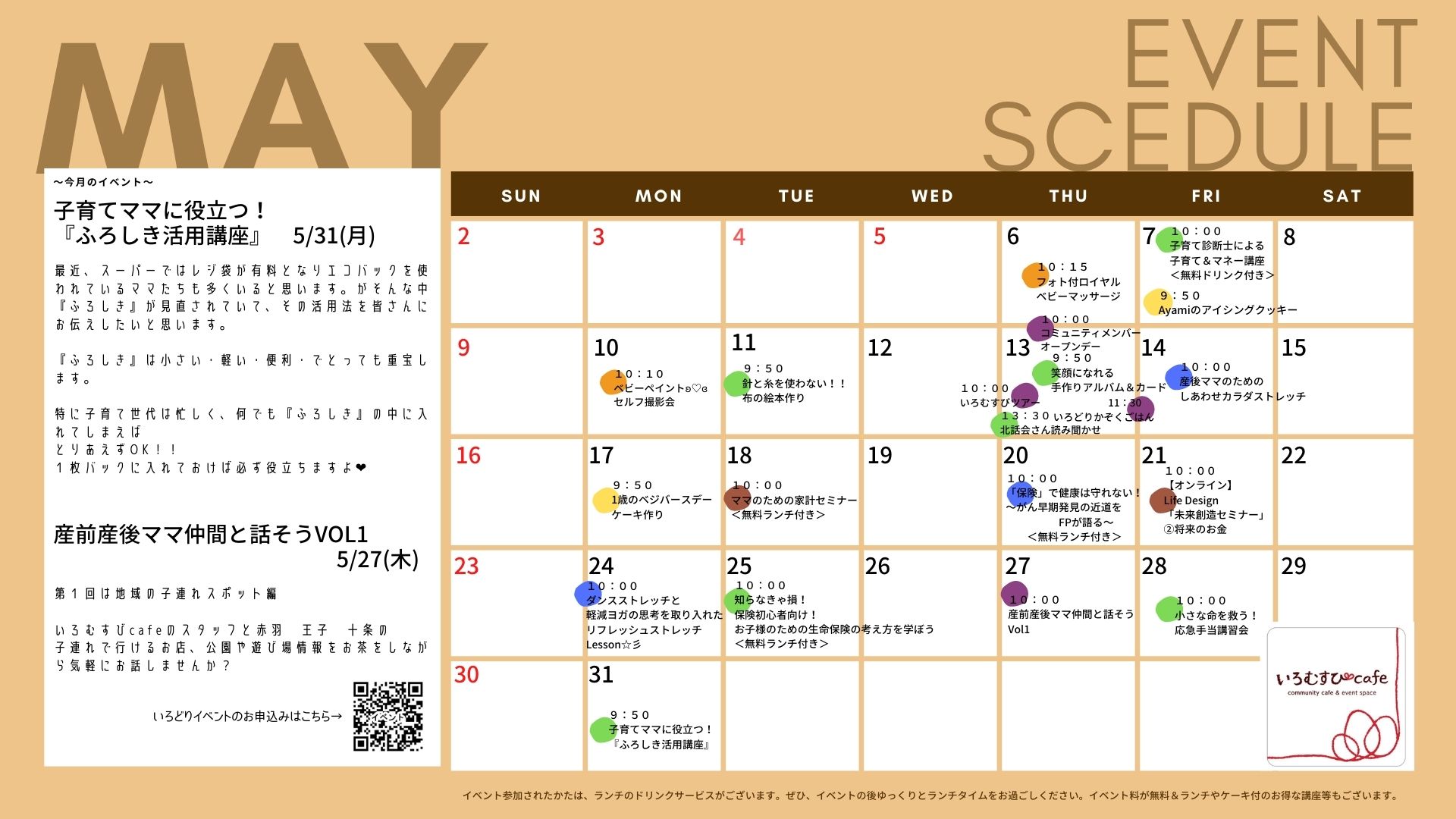 いろむすびcafeの2021年5月のイベントカレンダーです。