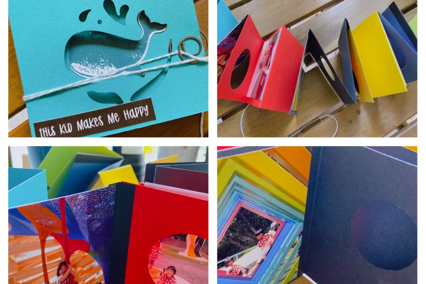 スクラップブッキングの道具を使ってアルバムを作ります。