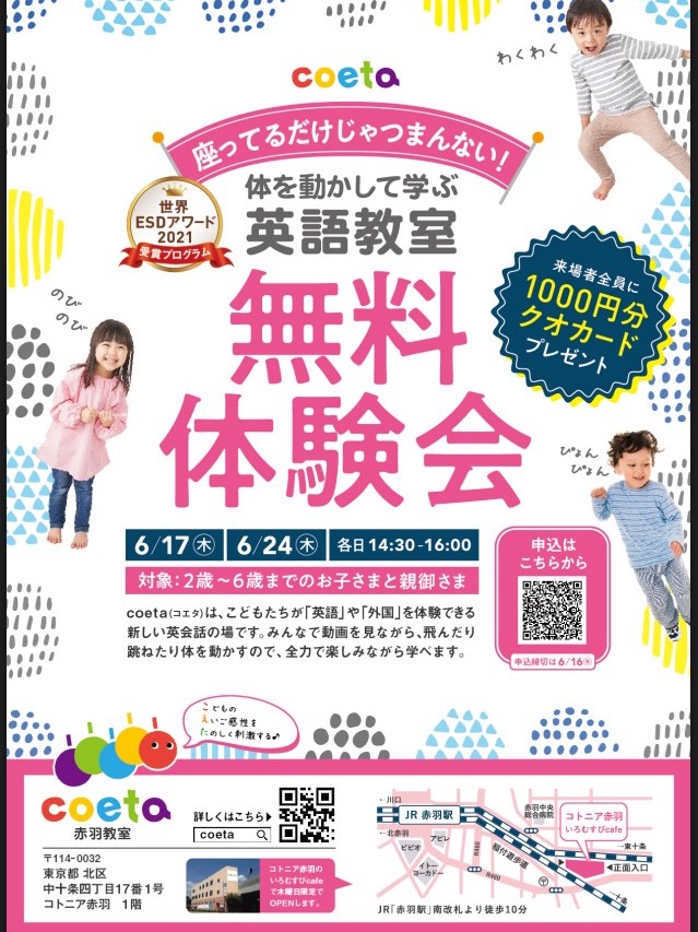 体験レッスン(6月17日(木)・6月24日(木))へのお申し込みお待ちしています!