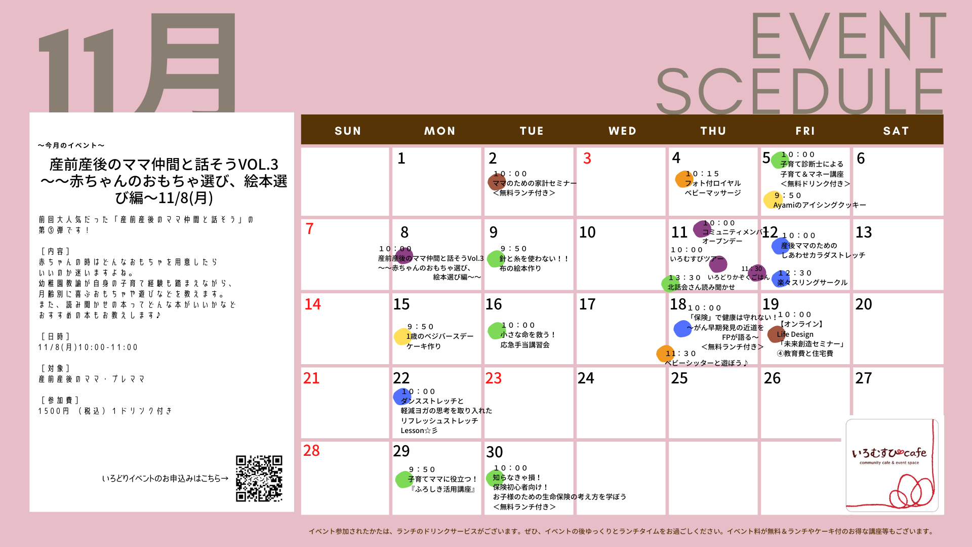 いろむすびcafeの2021年11月のイベントカレンダーです。